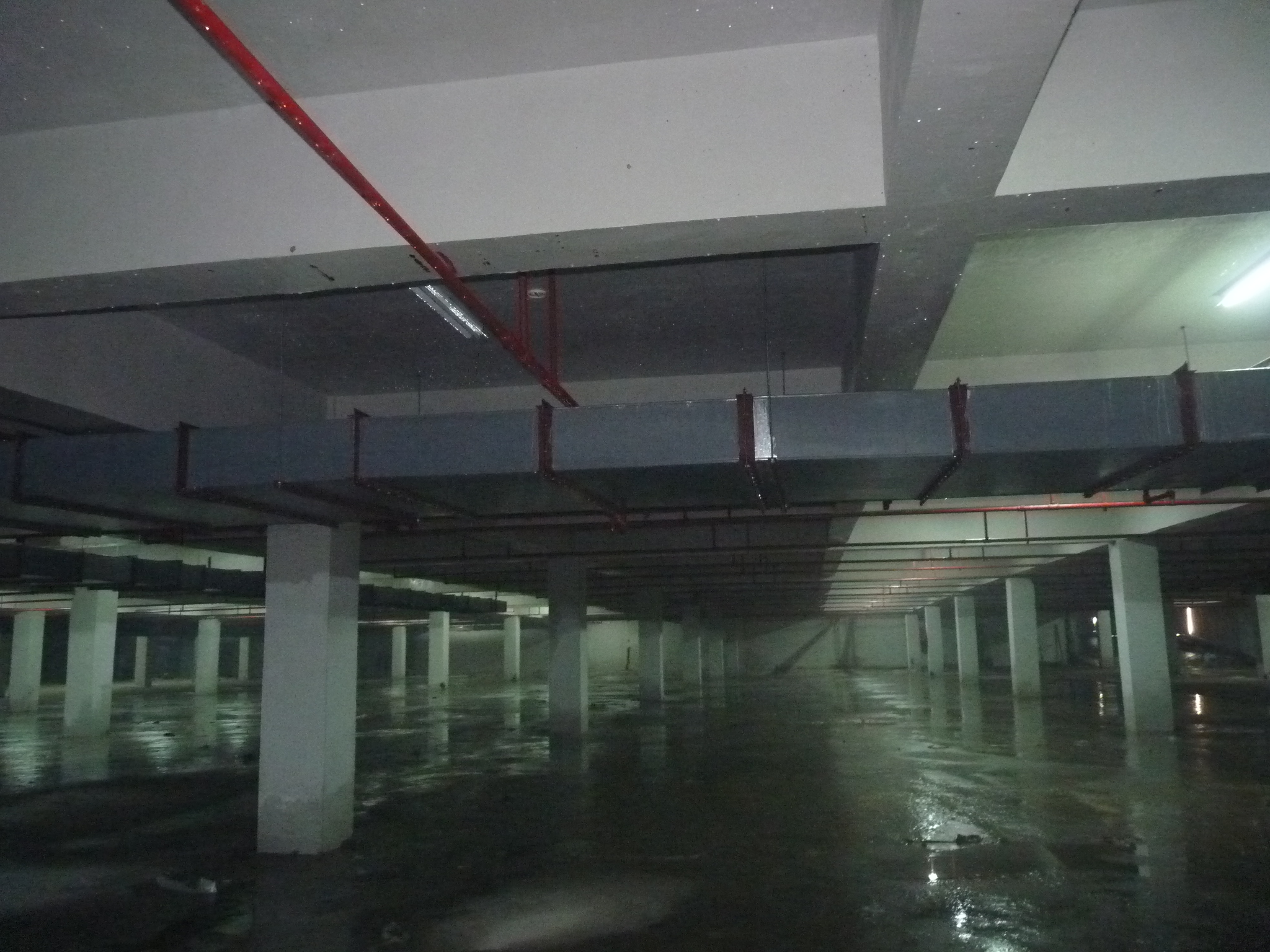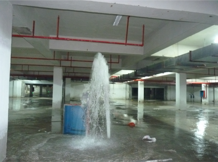 项目概况:苏宁集团浦口苏宁天润城十期五号地下车库为一层地下空间,面积6300㎡左右。于2007年8月开始挖土动工,同年9月开始进行基础底板等结构施工,12月完成地库主体结构施工,2008年5月完成地库后浇带的施工,并于2008年6月12日通过主体验收,2009年3月开始内装饰工程施工,并于同年7月底完成。而在2009年8月20日,工人在地库内打扫卫生时发现结构出现破坏现象,破坏范围为(A1-A8)×(AC~AK),面积4400㎡左右。 经现场察看后,认为该事故出现的原因是由于地库结构上方范围原设计回填1m厚土方绿地后变更为人工景观湖区,上方压重大大减少从而在结构的整体抗浮能力上有所下降。2009年7月下旬至8月中旬期间雨水较多,地下水位较高,地库所受浮力加大,引起地库抗拔桩部分失效,地下室底板形成较大的变形,并局部断裂,地下水渗入,进而也导致上拱区域结构立柱不堪重压破坏。