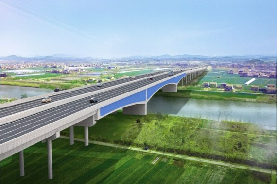 该项目由中交二公局施工,大桥全长1202.2米,桥面总宽34.5米,其中主桥为80+135+80米波形钢腹板预应力混凝土连续桥梁,主桥上构单幅16个悬浇节段,采用单箱单室直腹板形式,是徐州市首座波形钢腹板连续桥梁,为徐州至明光高速公路贾汪至睢宁段建设工程的重点控制性工程。