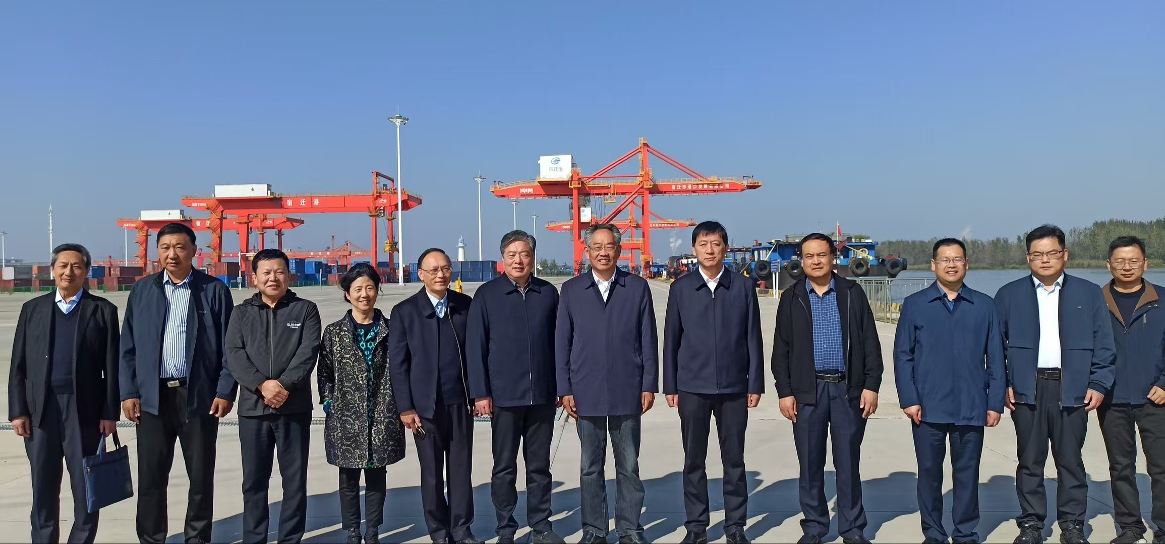 淮安市综合交通运输学会一行首先来到宿迁市港口集团中心港区现场参观调研。