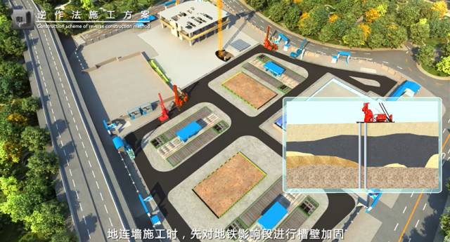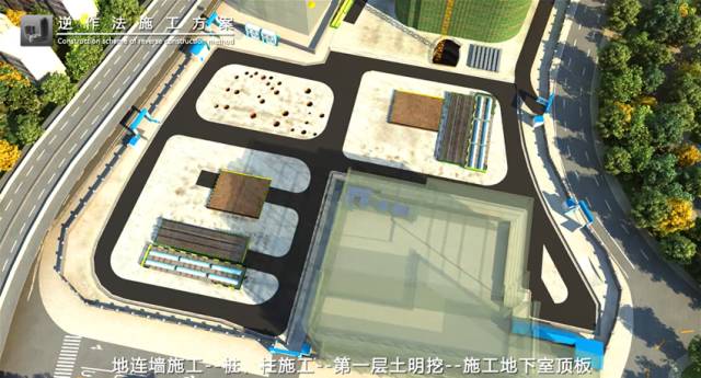 逆作法施工技术是先沿地下室周边施工支护结构,然后施工零米层的梁板楼面结构,作为水平支撑,随后逐层向下开挖土方和浇筑各层地下结构,直至底板封底。从地下结构的形成次序来说,是从上到下逐层建造的,与传统的顺序正好相反,因而称为“逆作法”。