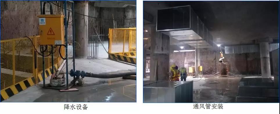 (4)由于逆作法的特殊性,施工中需充分考虑通风、照明、降水排水等措施,方能保证地下室用电安全及施工人员周围环境安全。