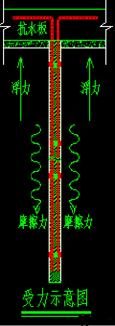 抗浮锚杆受拉构件,一端锚固在建筑物底板,另一端锚固在地基的持力层中,受力过程首先是通过锚固体钢筋与注浆体之间的作用将上拔力传至注浆体上;而后通过注浆体与周边土层之间的摩擦力将注浆体所受到的力传至周围稳定土体中去,从而形成具有一定抗拔能力的抗浮锚杆,起到抗浮锚杆的抗浮作用。