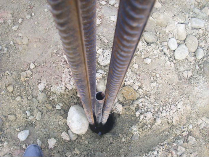 清孔完毕将锚杆垂直插入孔底,牢固地置于锚孔中央。