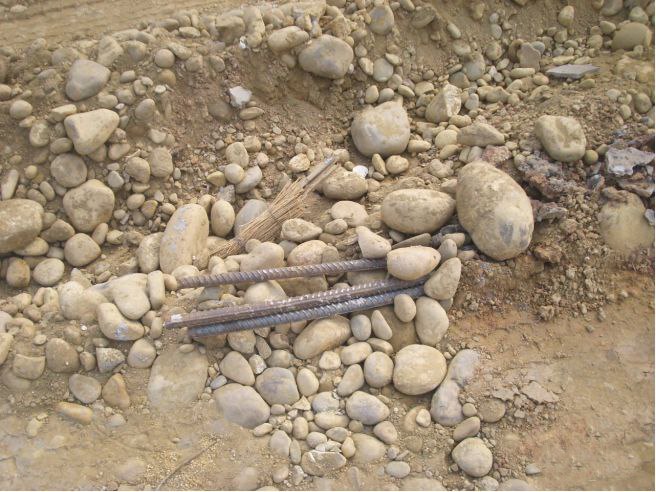 产生原因:套管内加入砾石,造成与钢管摩擦较大,拔管时,钢筋随套管上拔,同时,钢筋和注浆管挂在套管内不平的位置,拔管时,钢筋随套管上拔